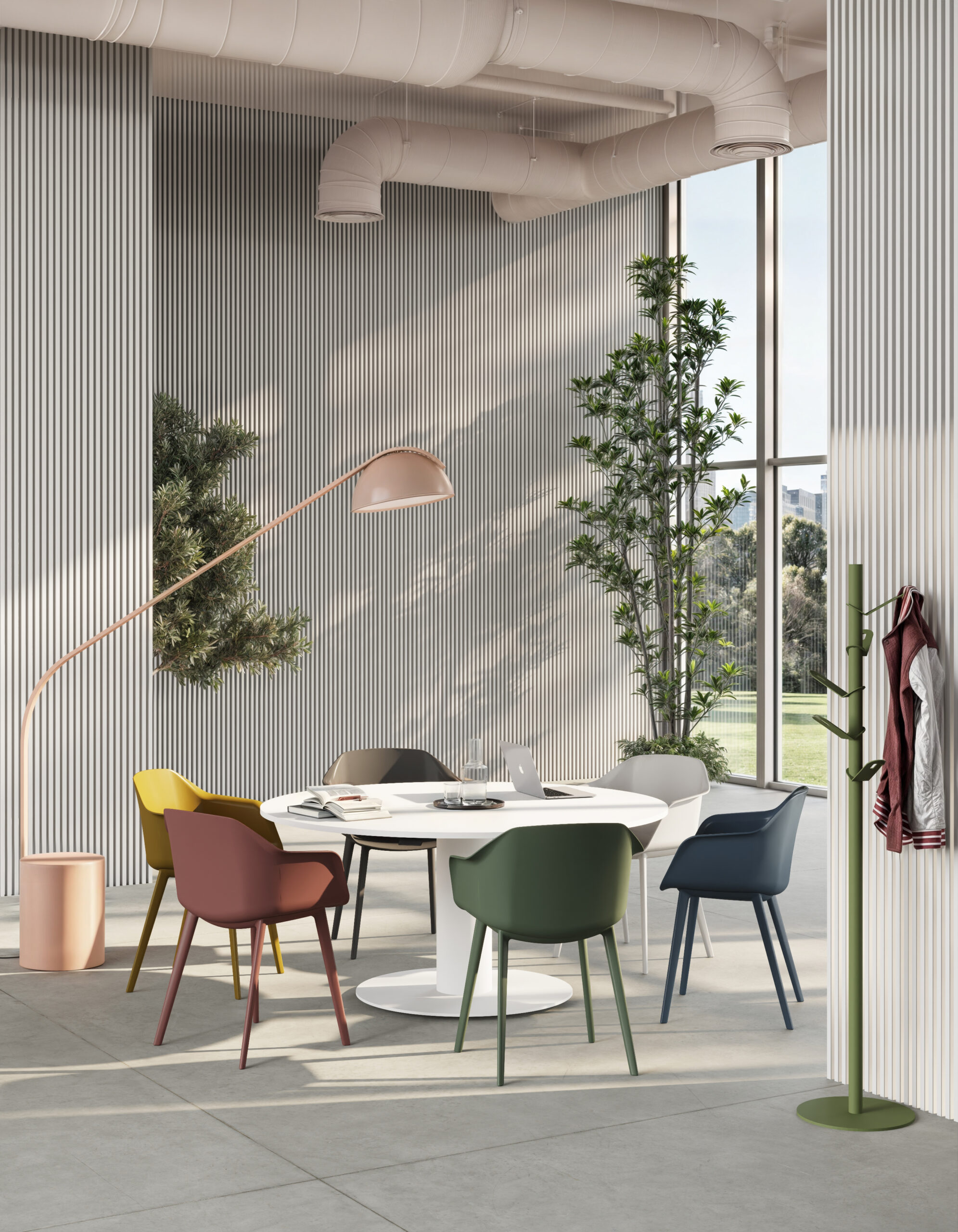 La chaise Miza se distingue par sa capacité de personnalisation, offrant une multitude de combinaisons de bases et de coques pour s’adapter à divers environnements.